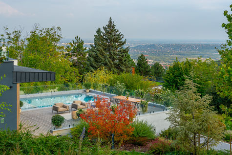 A végeredmény egy letisztult, természetes anyagokkal dolgozó, nyugodt és nagyvonalú épület, ahol a beltér és kültér határai észrevétlenül oldódnak fel. A panorámára forduló, intim életterek nyitottságát a tudatosan megformált kertépítészet erősíti: a különböző kültéri tartózkodásra alkalmas teraszok, pihenő- és napozófelületek, valamint az előnevelt és megmaradó növényzetnek köszönhetően már a kezdetektől érett kert együttese teszi teljessé a képet, egyszerre biztosítva lakóinak könnyű megközelíthetőséget és a szükséges privát szférát.